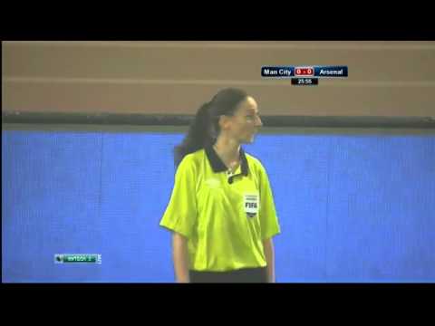 Ο Vermaelen της Άρσεναλ πετάει με φόρα τη μπάλα πλάγιο πέφτοντας πάνω στην επόπτρια Σίαν Μάσεϊ. Στη συνέχεια κρατιέται από τη ...μέση της για να μην πέσει.